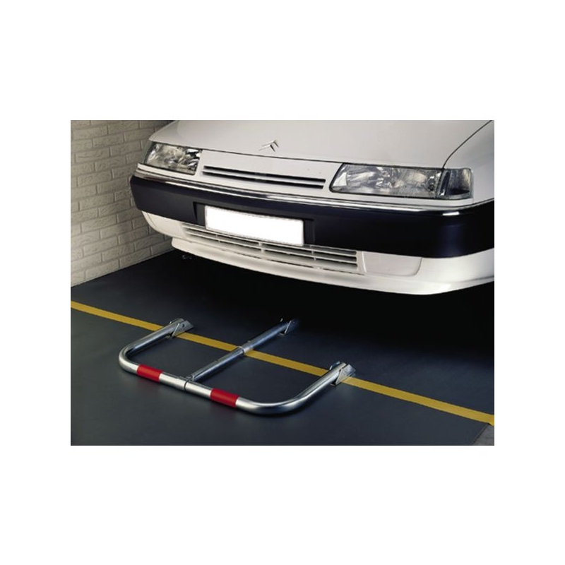 Protection permanente de stationnement. Tube Ø 35 mm, traité antirouille, livré avec 2 bandes rouges de repérage. Verrouillage simple et efficace par cadenas (inclus). Embases tôle, vis et chevilles (fournies). L x H x P : 75,5 x 40 x 36 cm Poids : 5,600 kg