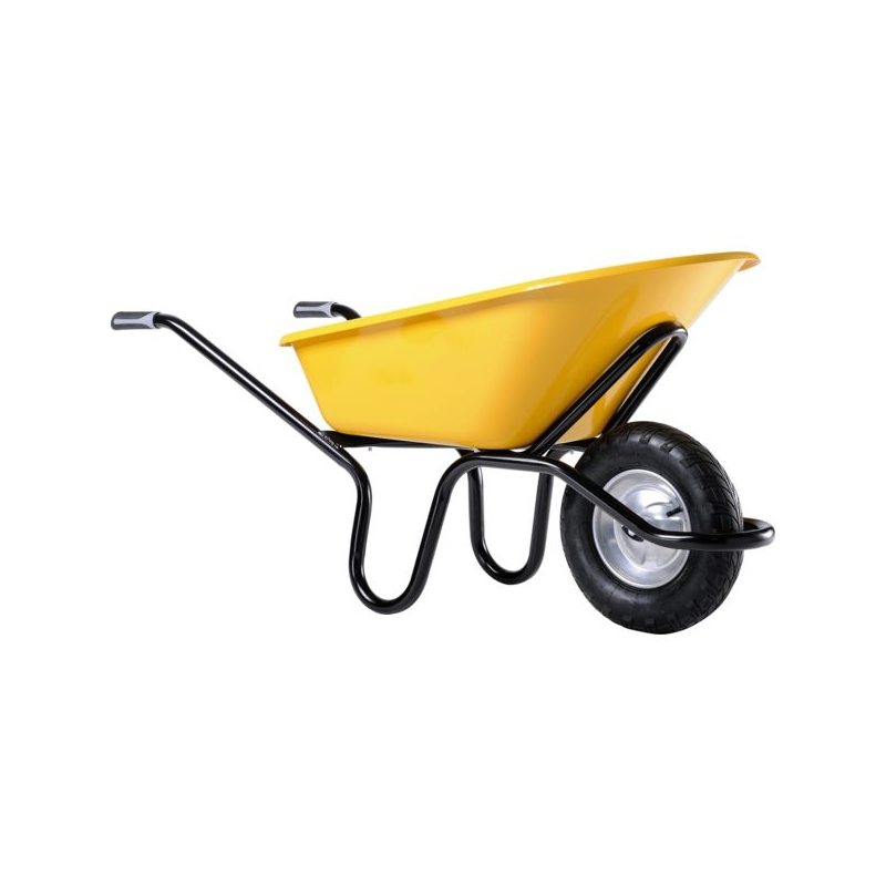 Pour les travaux du bâtiment et de la rénovation. Caisse peinte jaune 110 L, épaisseur 1,2 mm. Étroite (59 cm) et profonde passant par toutes les portes. Châssis Alpha en tube peint Ø 32 mm, indéformable avec support soudé renforçant le fond et la face avant de la caisse. Roue gonflée Ø 400 mm, jante polyprolylène. Poignées bi-matières. Charge utile : 250 kg Poids : 16,300 kg