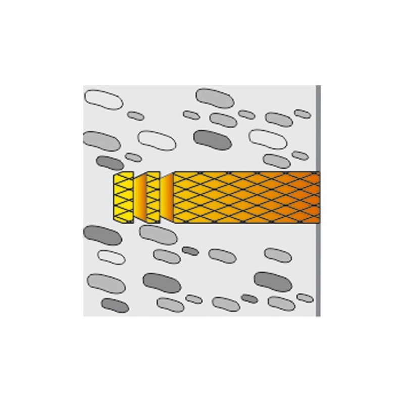 Cheville courte pour charge moyenne dans matériaux pleins. Pour la pose de plafonds suspendus. Expansion par vissage. Compatible avec vis et tiges filetées à pas métrique. Boîte de : 100