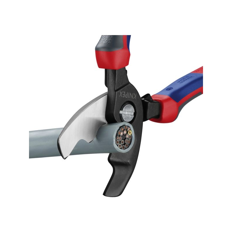 Pour câble cuivre et aluminium. Double tranchant de lame, permettant une prise en main ergonomique dans toutes les situations de coupe. Charnière vissée réglable. Capacité de coupe : Ø 20 mm Longueur : 200 mm