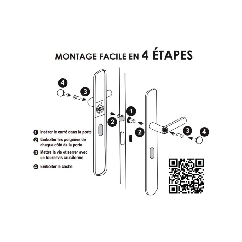 Pour porte intérieure d'épaisseur 38 à 50 mm. Système Easy K breveté made in France, fixation sans perçage, sans vis apparente, adaptable quelque soit l'entraxe 165 ou 195mm. Plaque : 220 x 42 mm Entraxe de serrure : 70 mm Longueur béquille : 114 mm Saillie de la béquille : 47 mm Fouillot carré : 7 mm Matière : Aluminium Conditionnement : boîte 100% recyclable.