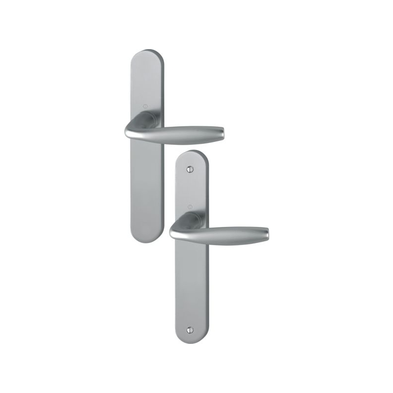 Pour porte intérieure dépaisseur de 38 à 47 mm. Carré à montage rapide garantissant un montage simple, sans jeu, sans outil et durable. Plaque : 190 x 41 mm (pour entraxe 165 mm) et 234 x 39 mm (pour entraxe 195 mm) Entraxe de serrure : 70 mm Fouillot carré : 7 mm Longueur béquille : 127 mm Saillie de la béquille : 56 mm Finition : aluminium aspect inox Conditionnement : boîte