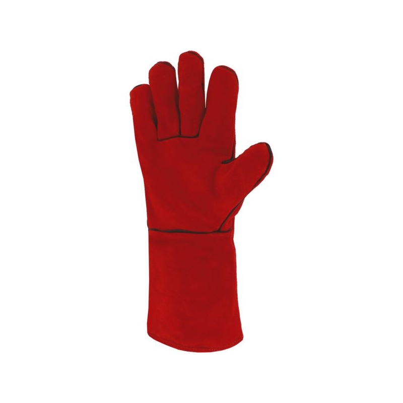 Tout croûte de bovin, coutures en fil aramide. Cuir tout croûte de bovin. Paume et dos entièrement doublée molleton. Montage américain (pouce palmé), dos d'une pièce. Coutures en fil aramide renforcées par un passepoil. Manchette entièrement doublée toile coton, liseré en bordure. Risque chaleur et/ou feu Manutention lourde / Milieu sec Applications métiers : soudage manuel, métallurgie, sidérurgie, démoulage de pièces, travaux à proximité des fours Longueur : 35 cm Épaisseur : 1,10 mm Taille : 10 Norme : CE Cat II - EN 388 (3133X) - EN 407 (413X4X) - EN 12477 type A