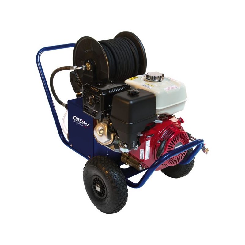 Pour des applications de décapage multiples. Moteur à essence Honda 13 CV avec sécurité manque d'huile. Pompe radiale, 3 pistons céramique. Régulateur anti coups de bélier, séparé de la culasse avec retombée de pression à zéro. Aucun recul sur la lance quand on appuie sur le pistolet. Vitesse de rotation de la pompe : 1450 tr/mn Pression de service : 240 bar Débit : 1100 l/h Poids : 72 kg Livré avec : lance double 900 mm réglable haute et basse pression, lance turbo 700 mm avec buse rotative, pistolet avec raccord tournant, 20 m de flexible, 5/16 une tresse métallique.