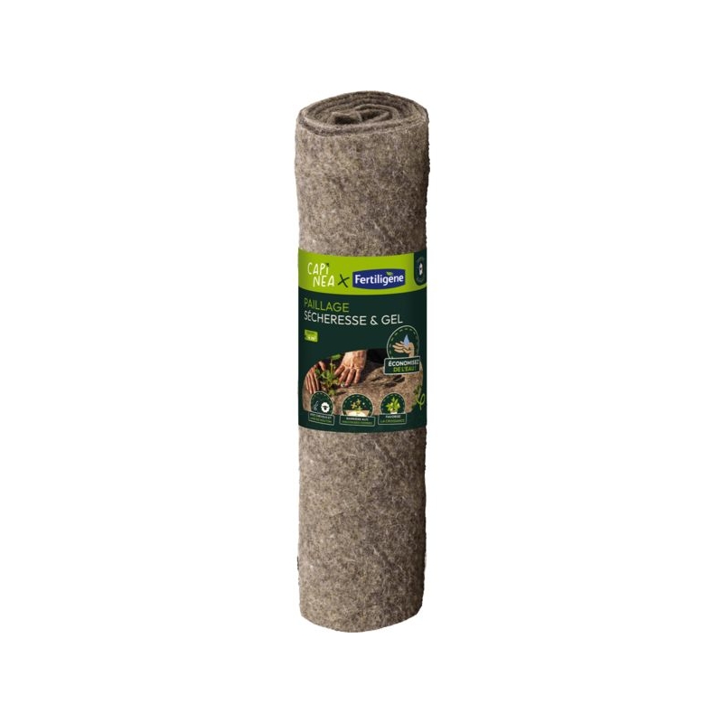 Paillage anti-sécheresse et gel, 100% naturel, fabriqué à partir de cheveux et laine de mouton. Rouleau de 0,8m x 5 mètres Fabriqué en France