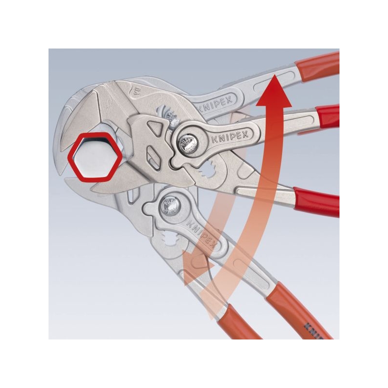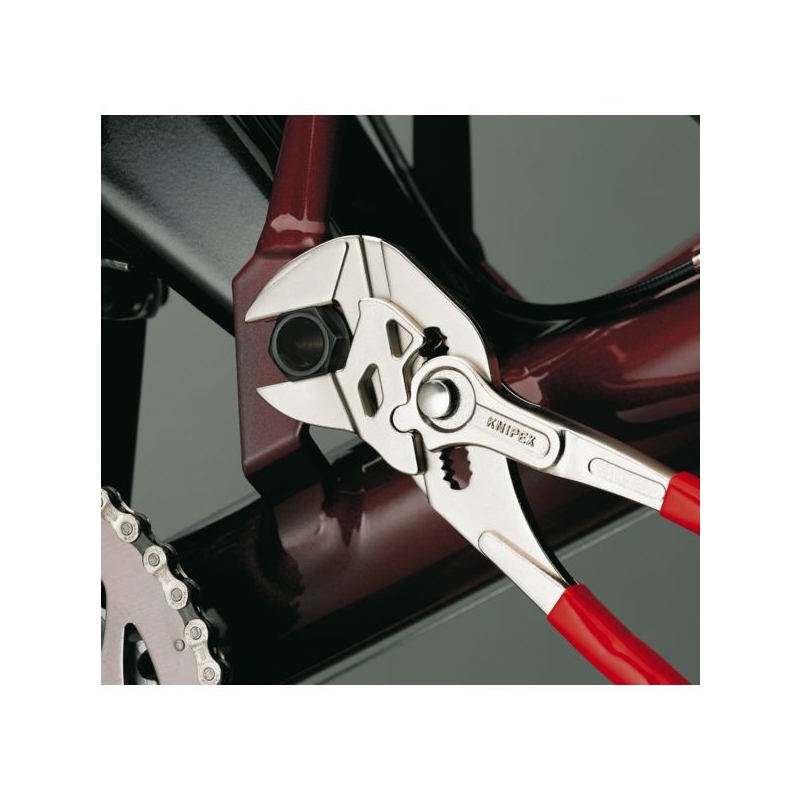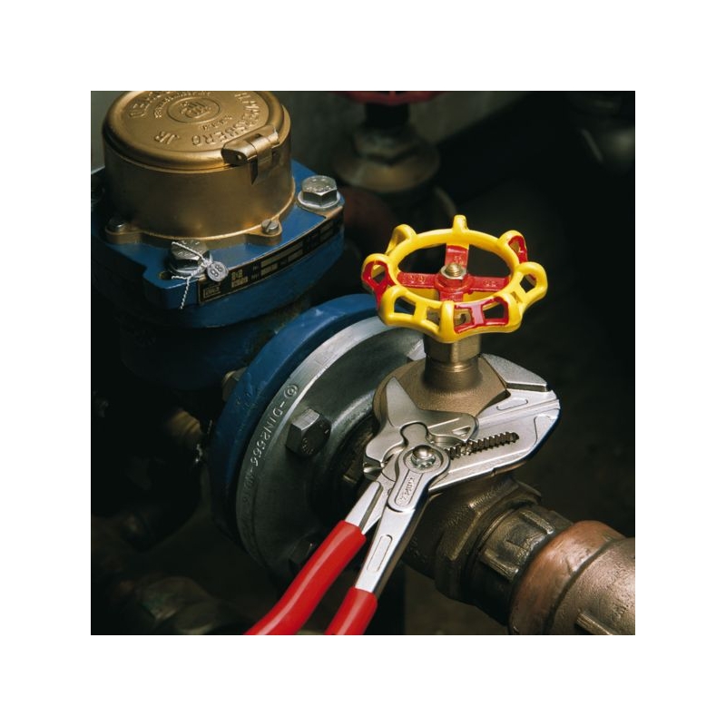 Remplace tout un jeu de clés plates, métriques et en pouce. Mâchoires lisses nendommageant pas les supports. Réglage par simple pression du bouton. Poignées gainées en PVC.