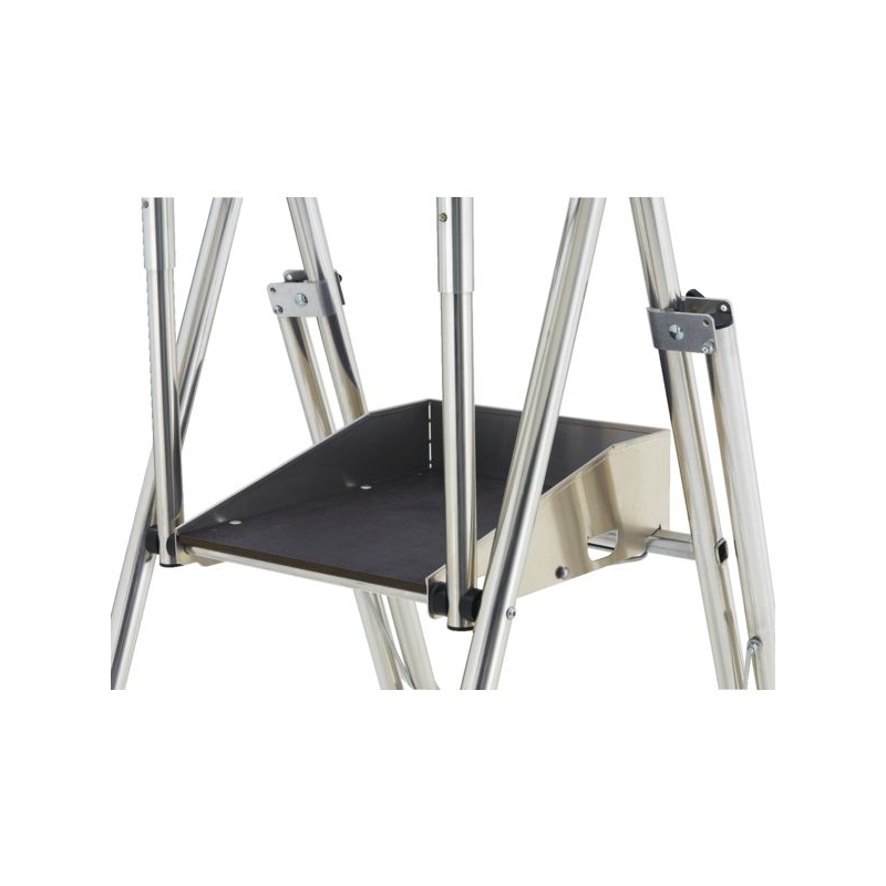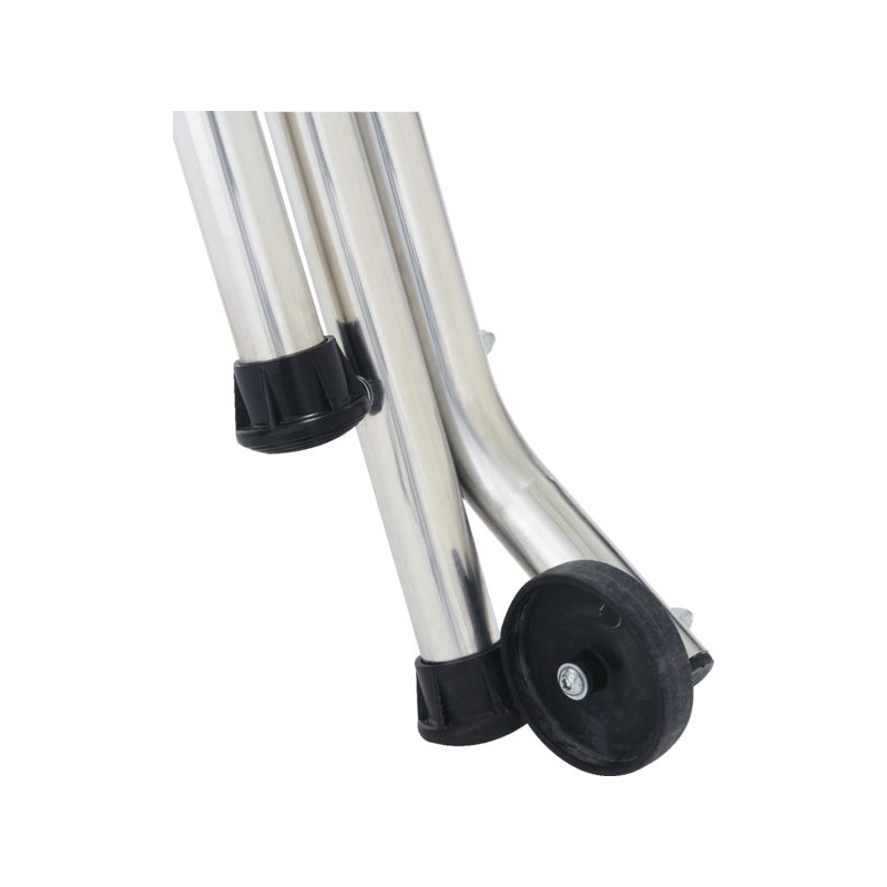 Utilisation sur sol plat. Usage intensif. En aluminium. Garde-corps fixe 360° avec portillon semi-automatique rigide. Plate-forme 400 x 490 mm avec plinthes intégrées. Marches striées antidérapantes de 60 mm. Tablette porte-outils. 2 roulettes Ø 100 mm pour les déplacements. Béquille arrière adaptée pour le passage des WC (sauf modèle 2 marches). Modèles 4 et 5 marches avec stabilisateurs. Charge maxi. : 150 kg Norme : PIRL NFP 93353 - Décret 2004-924