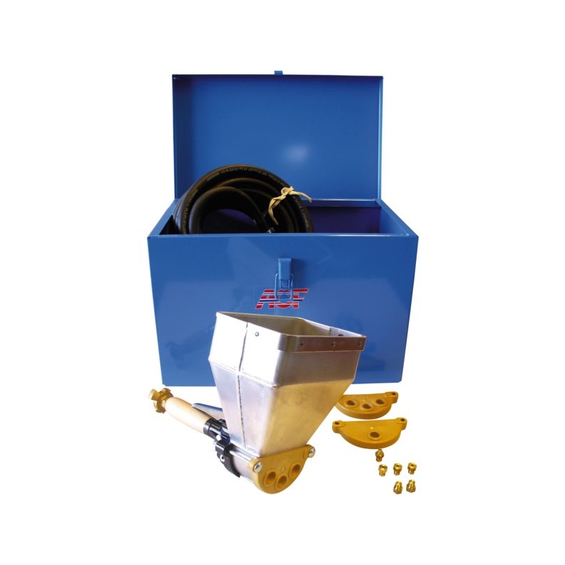 Pour la projection des enduits de façade. Rendement de 20 à 25 m² à l'heure. Pression d'utilisation de 2,5 à 4,5 bar. Débit d'air mini : 500 L/mn Poids : 1,6 kg Coffret métallique, 1 ensemble de plaques et bouchons, 10 m de tuyau d'air comprimé inclus.