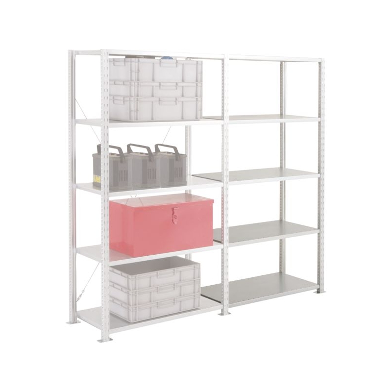 Solution galvanisé à tablettes tôlées. Hauteurs de poteaux jusqu'à 7,5m et 24 dimensions de tablettes. Conçu pour supporter les charges standards ou lourdes grâce au renfort qui permettent un chargement jusqu'à 360 kg par niveau. Finition galvanisé qui s'adapte à tous les environnements (industriel, réserve de magasin, logistique ,etc.) Poteaux et tablettes Galva Dim : 2000 x 1000 mm