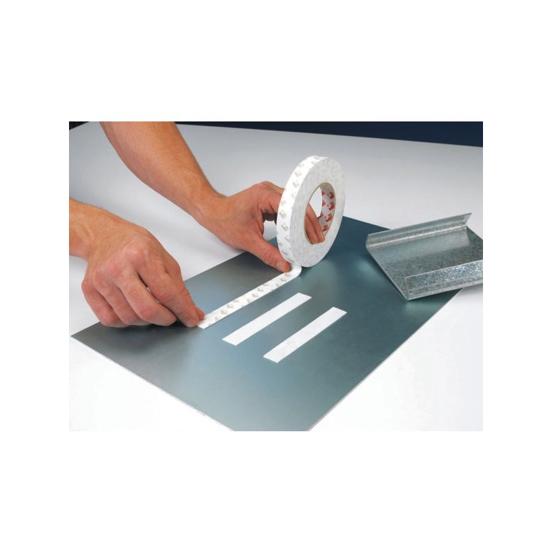 Permet le collage de matériaux de nature et de surface différentes. Remplace vis, clous et rivets. Largeur : 19 mm Longueur : 10 m