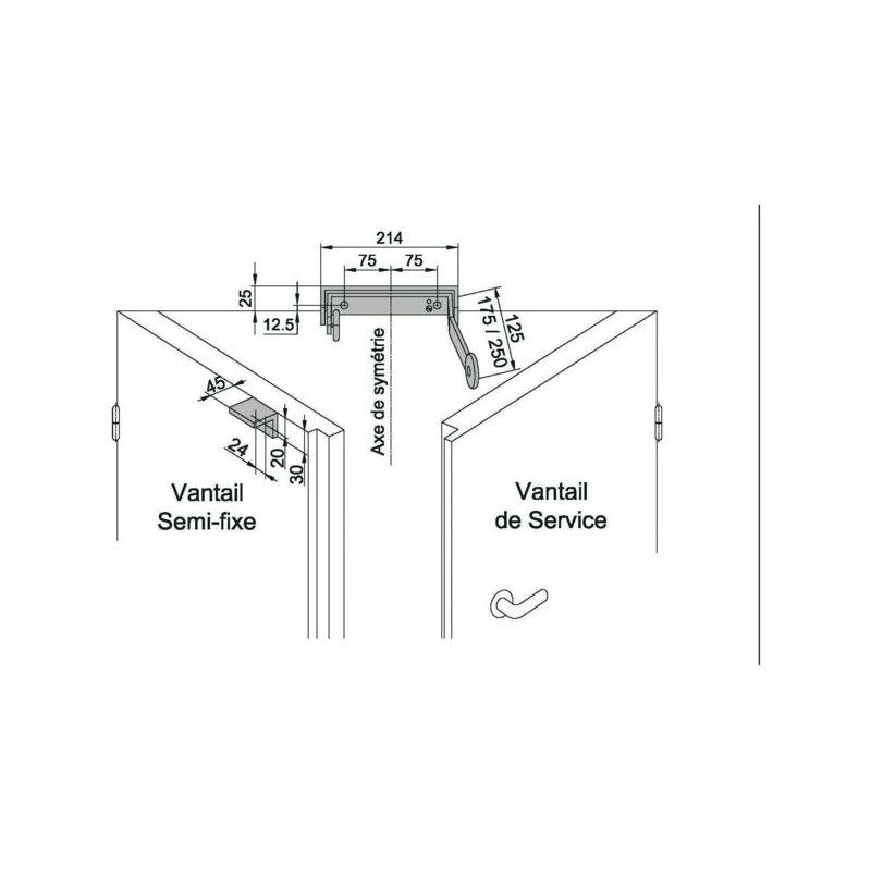 Pour porte coupe-feu à 2 vantaux. Permet au vantail de service de se fermer systématiquement après le vantail secondaire. Largeur : 125 mm Finition : laqué argent Conditionnement : sachet Colisage : 20 pièces