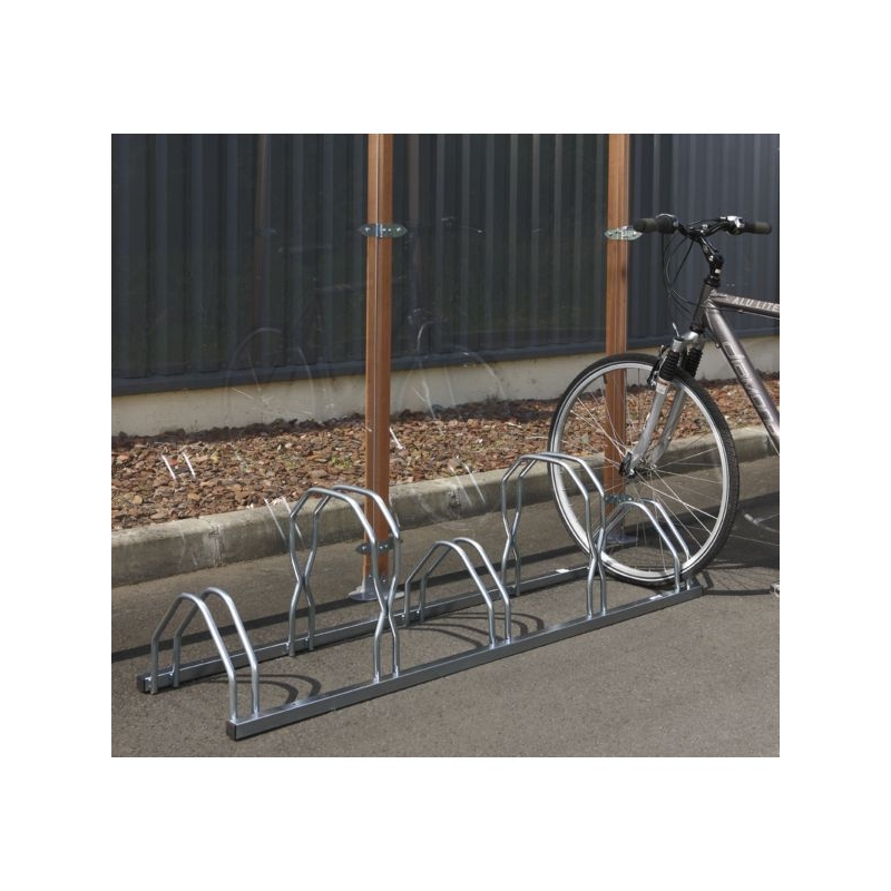 Rangement des vélos sur 2 niveaux sans contact des guidons entre eux. Structure en acier zingué, garantie antirouille. Base en tube carré de 30 mm, arceaux doubles en tube Ø 16 mm. Système breveté permettant le maintien des vélos en serrant le pneu sans abîmer la roue. Adapté aux pneus universels de 35 à 55 mm. Fixation murale possible. H x P : 433 x 387 mm Visserie non fournie.